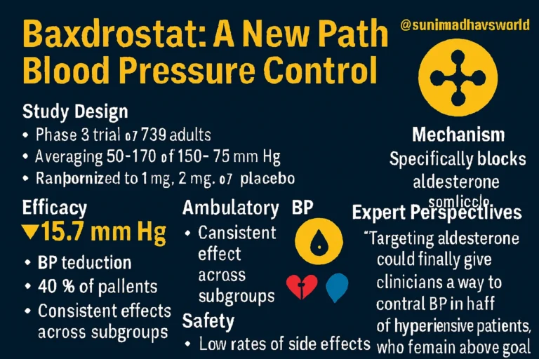 After decades without a new class of antihypertensive drugs, baxdrostat represents an exciting development. By specifically targeting aldosterone synthesis, it not only lowers blood pressure effectively but may also reduce long-term risks of cardiovascular and kidney disease.