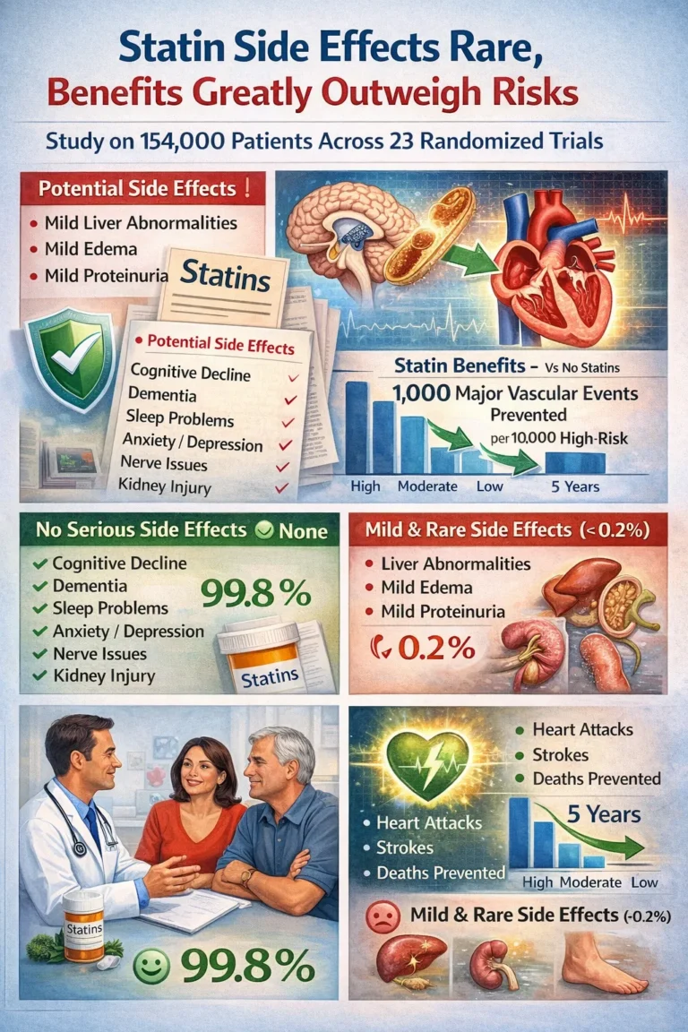 A large-scale analysis published in *The Lancet* offers significant reassurance regarding the tolerability of statin therapy, finding that the vast majority of adverse effects commonly listed on medication labels are not causally related to the drug. The study, conducted by the Cholesterol Treatment Trialistsโ Collaboration, utilized individual patient data from 23 randomized controlled trials involving 154,000 participants to evaluate 66 reported non-muscle, non-diabetes adverse outcomes.ยน