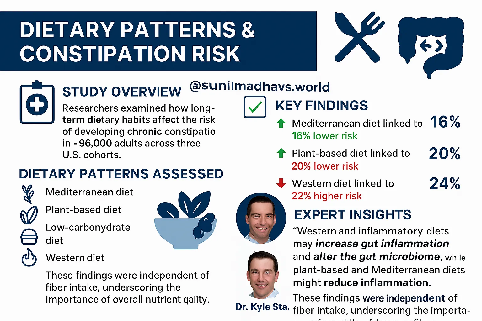 Dr. Staller believes these findings are meaningful because they highlight the potential of preventing constipation through dietary patterns, not just managing symptoms once they arise. He also stressed that relying on a specific food or supplement may be less effective than making overall changes to diet quality.