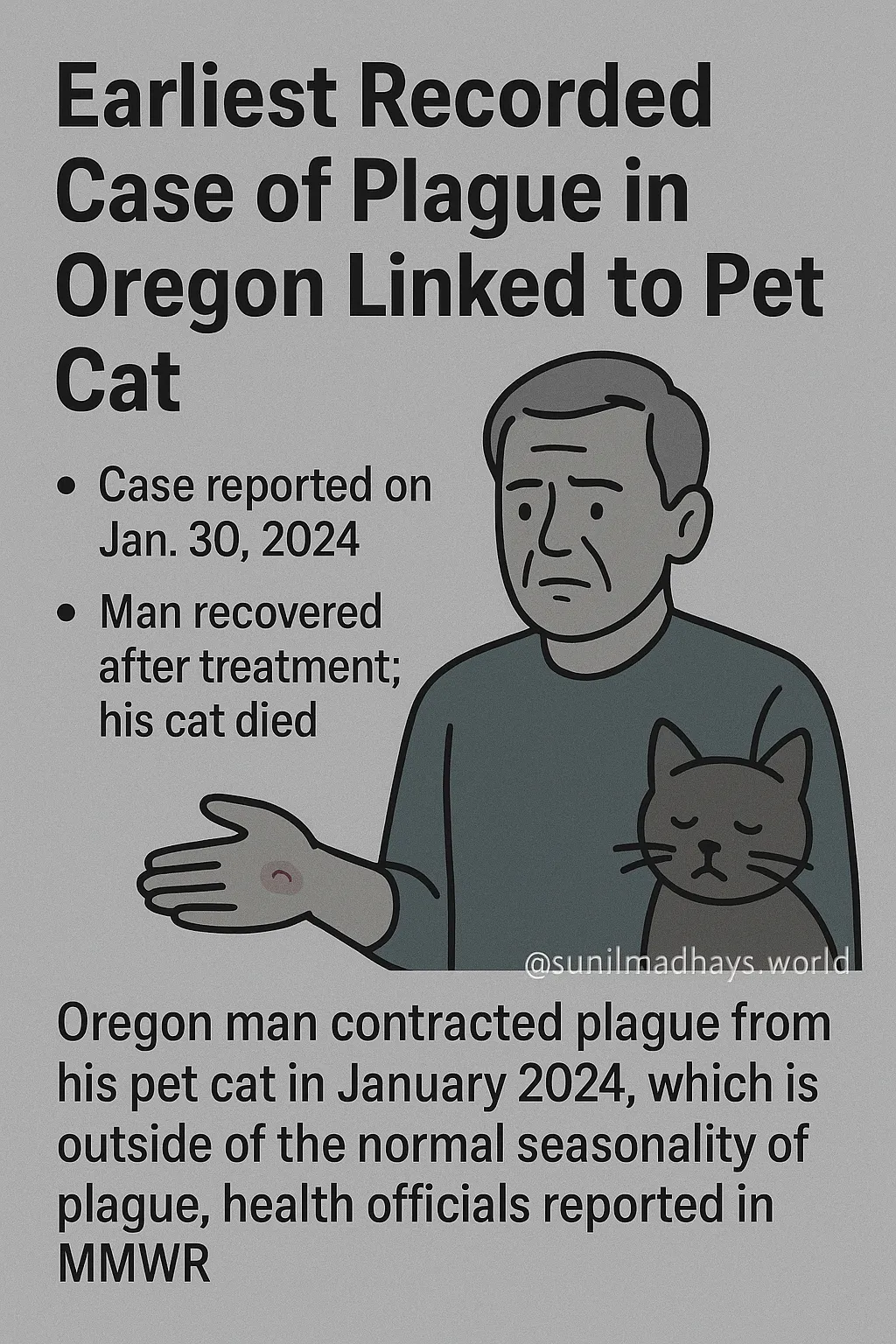 Dr. Emilio DeBess, Oregon’s public health veterinarian, explained that the man likely contracted the plague from his cat. Cats are highly susceptible to plague and can transmit it to humans, especially through flea bites. This case was notable not only for its zoonotic transmission but also for occurring in January—far earlier than the typical plague season in the western U.S. (usually warmer months). This suggests possible shifts in flea or rodent behavior, climate influences, or indoor exposures.