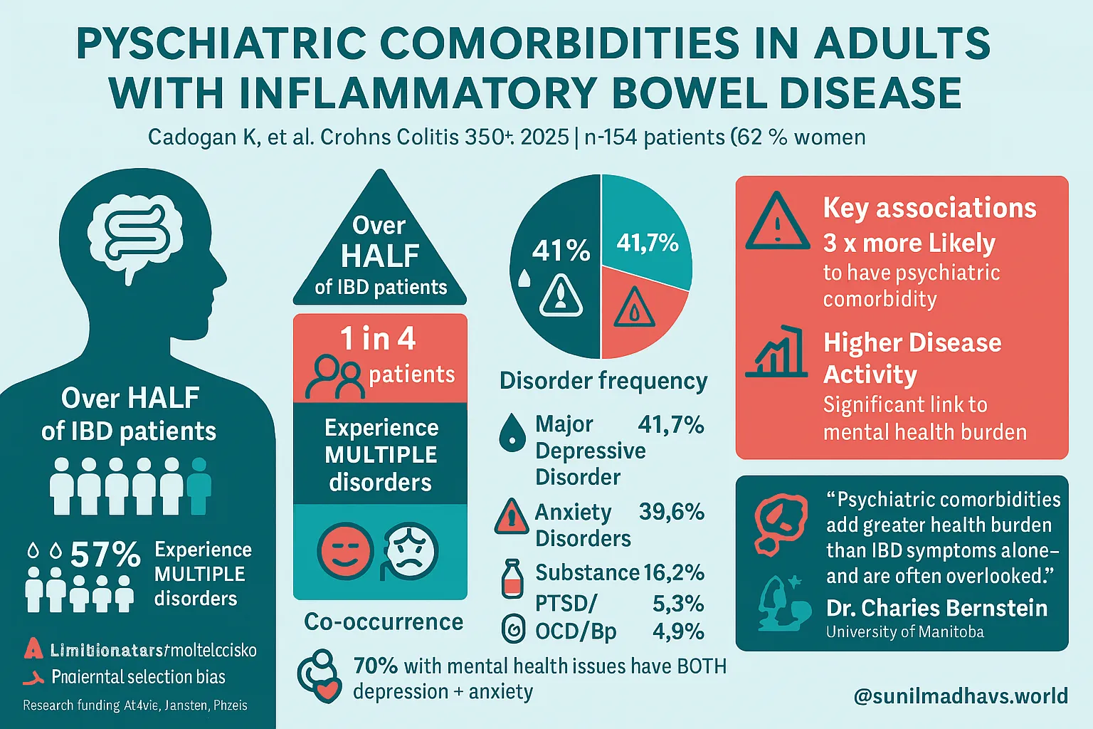 - It does not establish a clear timeline between the onset of psychiatric disorders and IBD progression.