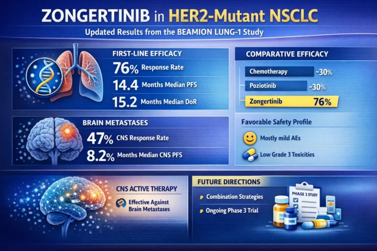 HER2 mutations occur in approximately 3% to 4% of patients with non-small cell lung cancer (NSCLC) — a relatively small proportion that nonetheless represents a population of substantial absolute size given the overall prevalence and mortality burden of lung cancer. Until recently, no HER2-directed therapy was available in the first-line setting. Updated results from the Beamion LUNG-1 study, presented at the European Lung Cancer Congress, demonstrate that zongertinib (Hernexeos, Boehringer Ingelheim) produces response rates and progression-free survival outcomes that substantially exceed both historical chemotherapy benchmarks and prior HER2-directed agents — establishing it as a meaningful first-line advance for this molecularly defined population.